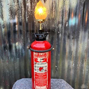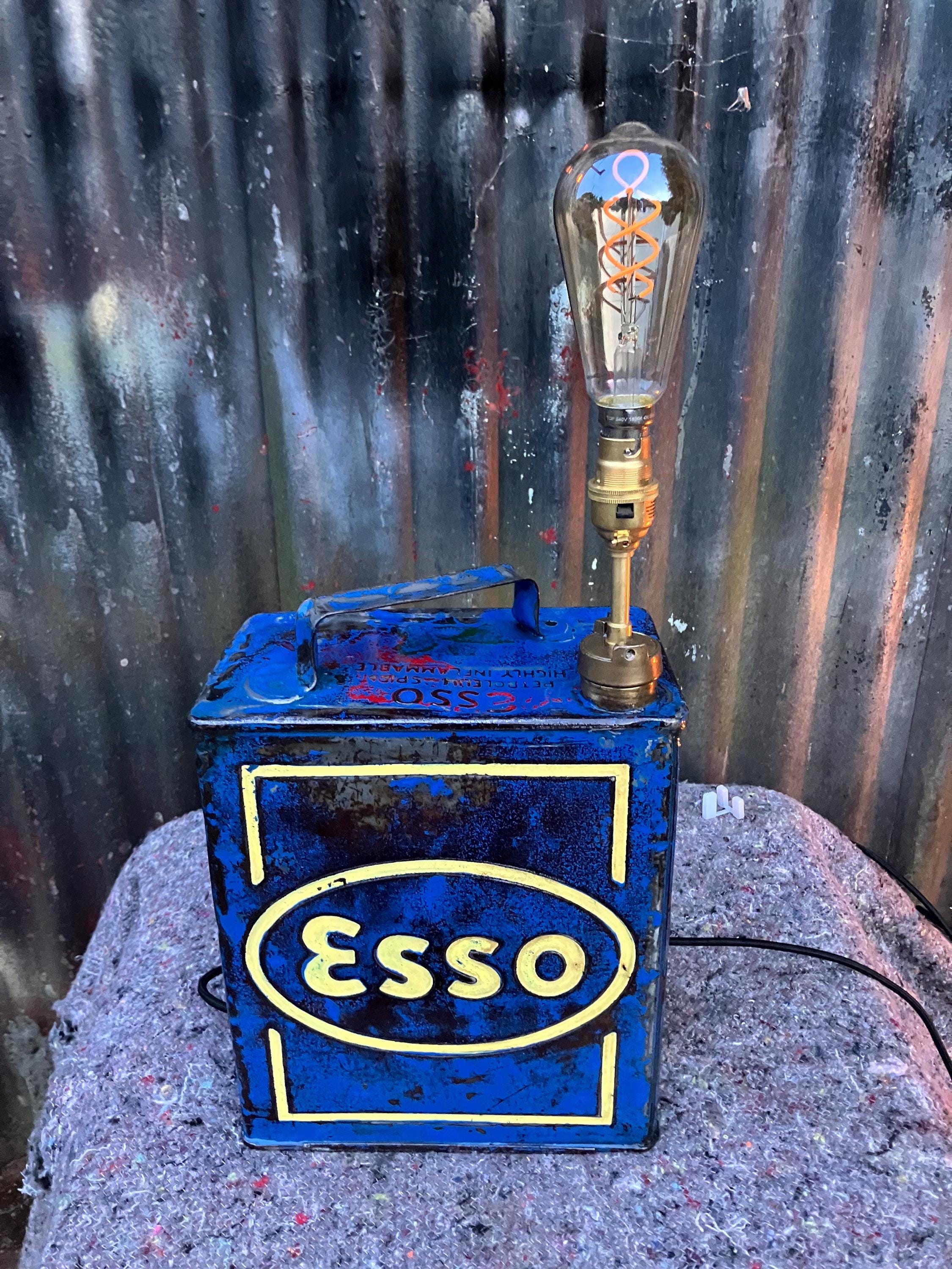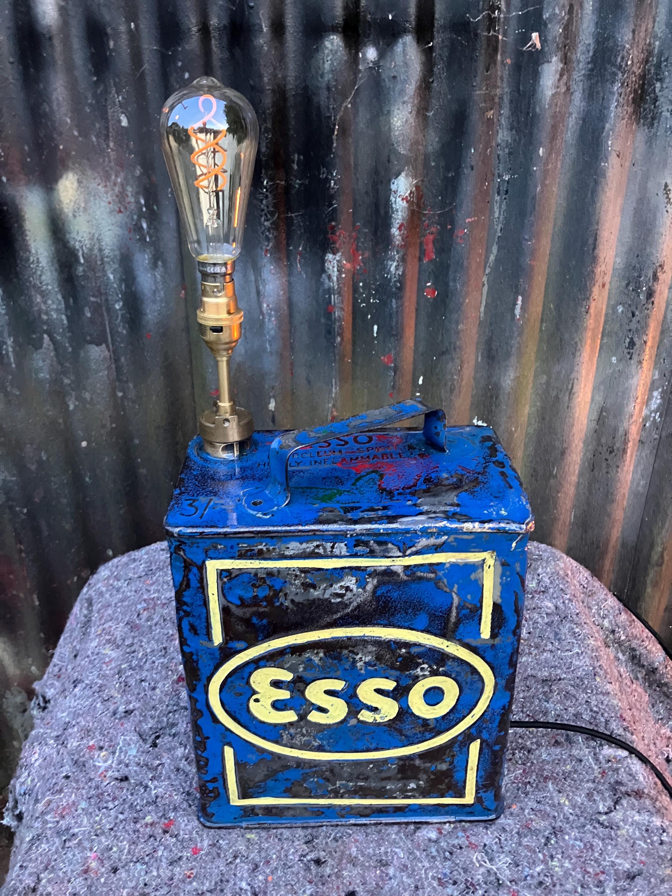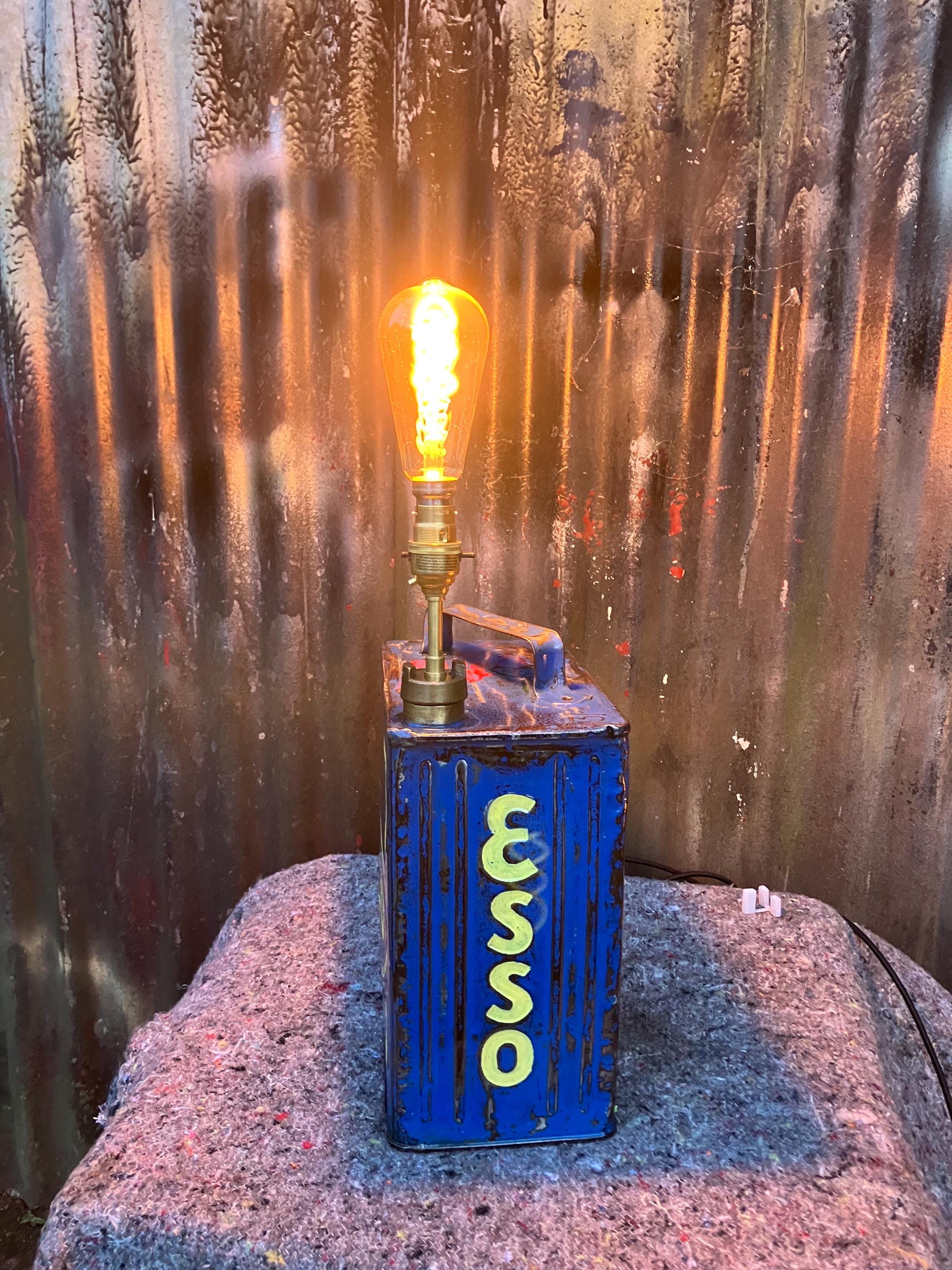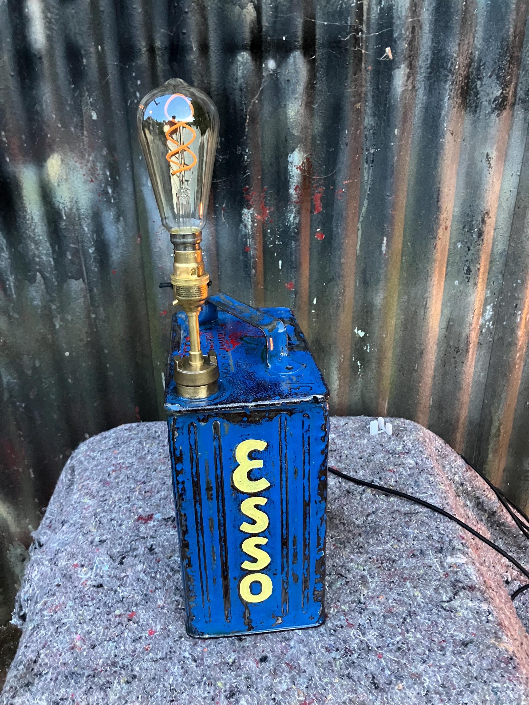 This fantastic vintage fuel can lamp has been lovingly handcrafted into this amazing table lamp in our workshop in south wiltshire This cool vintage fuel can lamp has been hand painted in the past and this has aged giving it a lovely patina that we have clear coated to give it an amazing appearance for many years to come This cool lamp comes with a black braided electrical flex brass B22 switched bayonet lamp holder and has been independently pat tested The lamp will come with a cool vintage look led bulb This great lamp will look amazing in any setting domestic or commercial